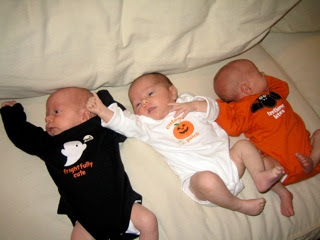 We went to the doctor on Friday and the babies are gaining weight. Wells is 6 pounds 8 ounces, Gates is 6 pounds 4 ounces, and Davene hit the scales at 7 pounds 4 ounces. Everyone is doing good, Gates is still on the special formula. They will be 5 weeks old on Wednesday.